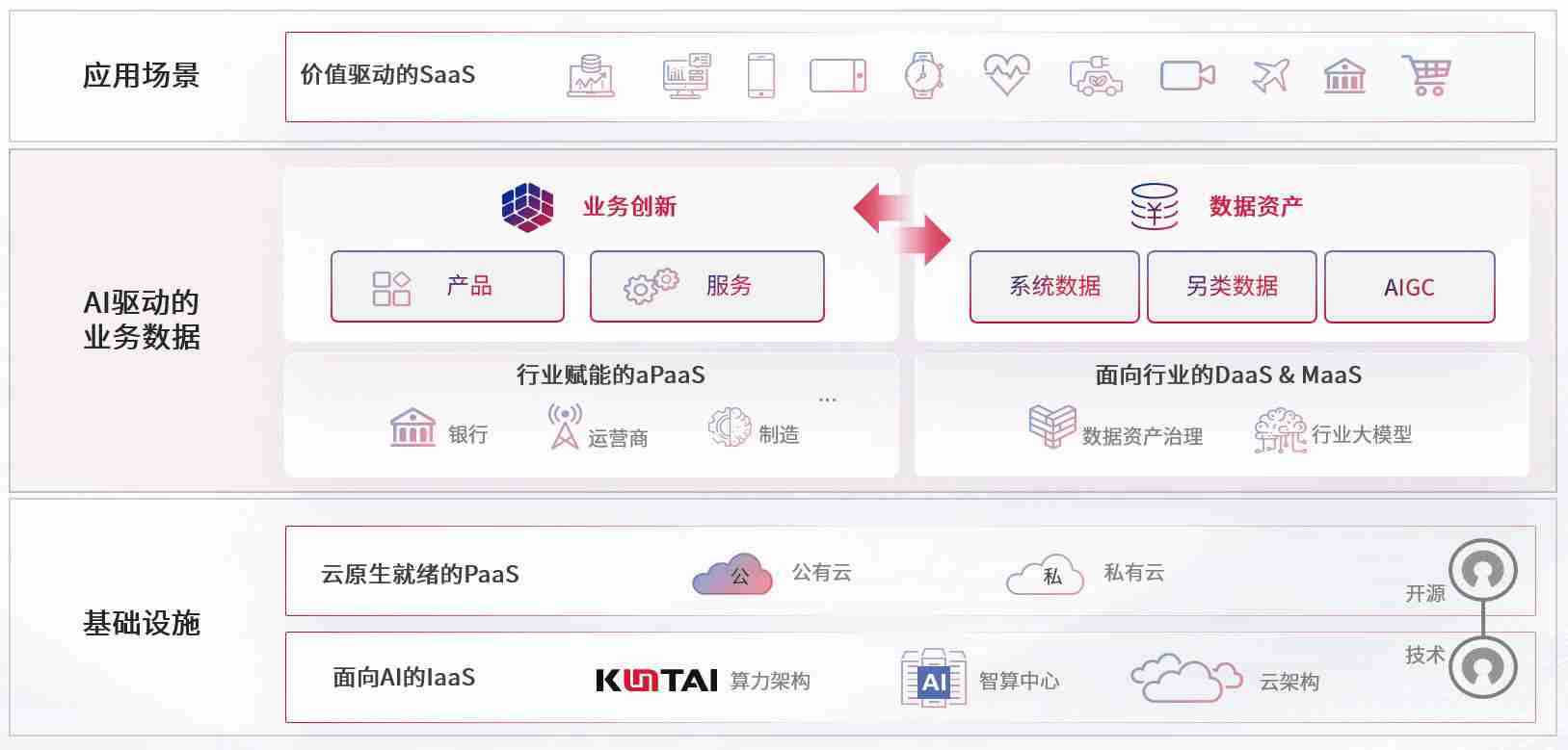 数字时代,,,围绕企业数字化转型的关键要素,,,,尊龙旗舰厅数码开创性的提出数云融合战略和技术体系框架,,,着力在云原生、、、数字原生、、AI原生和信创产业上架构产品和服务能力,,,为处在不同数字化转型阶段的快消零售、、、汽车、、、、金融、、、、医疗、、政企、、教育、、运营商等行业客户提供泛在的敏捷IT能力和融合的数据驱动能力,,,,构建跨界融合创新的数字业务场景和新业务模式,,,,助力企业级客户建立面向未来的核心能力和竞争优势,,全面推动社会的数字化、、智能化转型升级。。。。